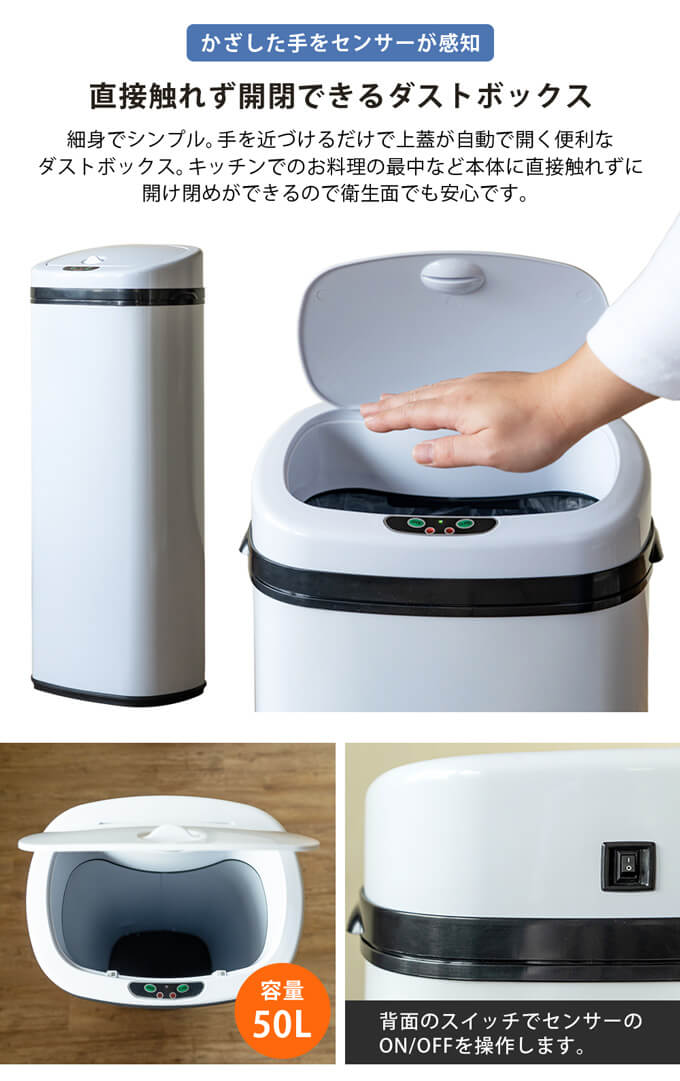 センサー自動開閉式ダストボックス 50L SG-01-WH ホワイト