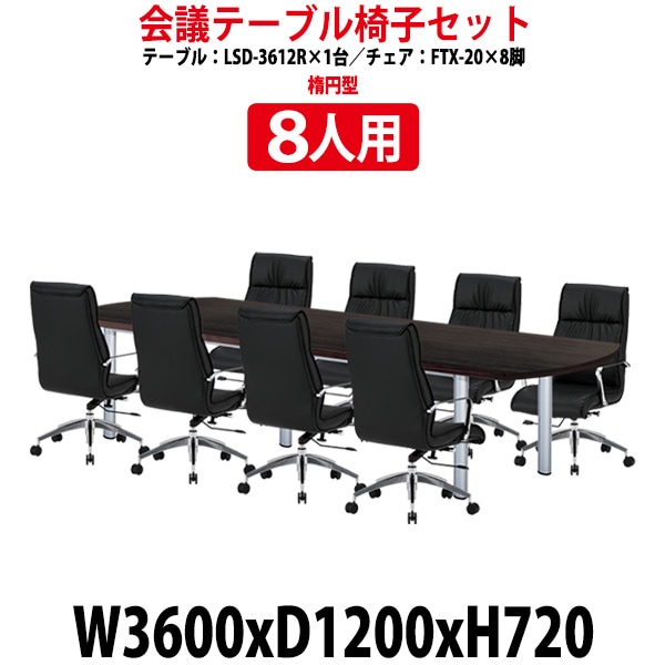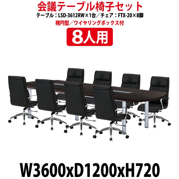 会議用テーブルセット 8人 LSD-3612RSET 会議テーブル LSD-3612R (サイズ 幅3600x奥行1200x高さ7...