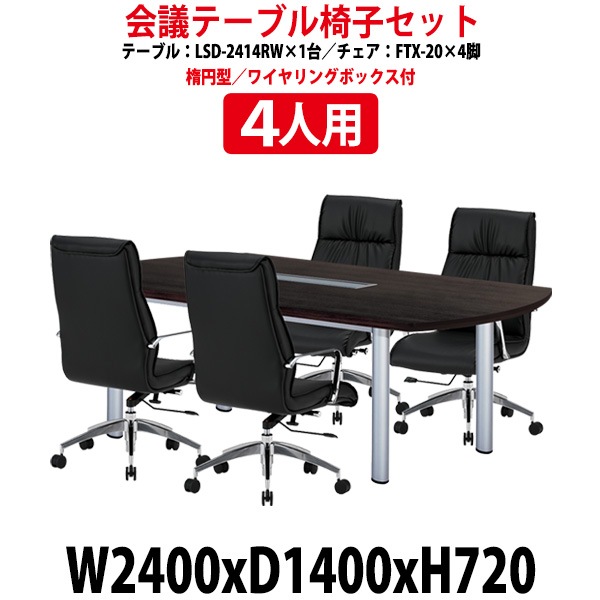 会議用テーブルセット 4人 LSD-2414RSET 会議テーブル LSD-2414R (サイズ 幅2400x奥行1400x高さ7...
