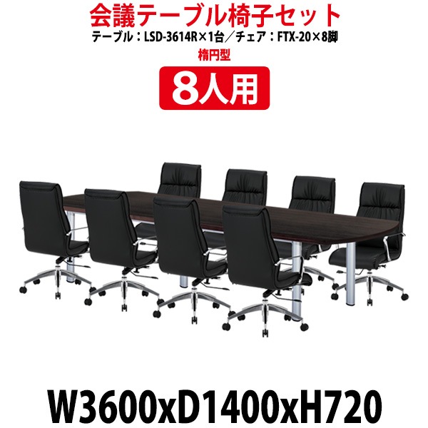 会議用テーブルセット 8人 LSB-3614RSET 会議テーブル LSB-3614R (サイズ 幅3600x奥行1400x高さ7...