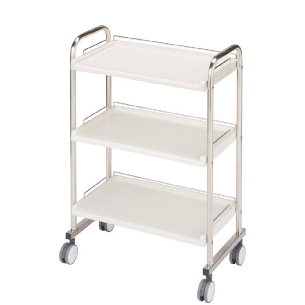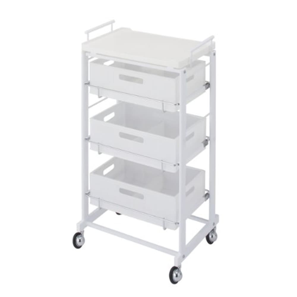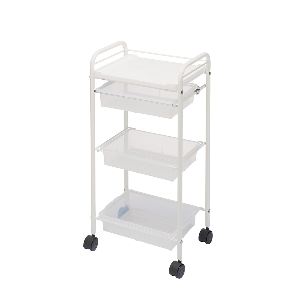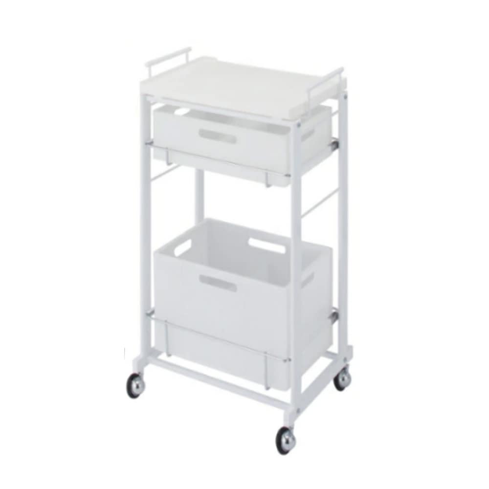トレーワゴン | C-305 キャスター付 ドライヤーホルダー メッシュラック付 トレー式天板 クリア ラメ 全27色