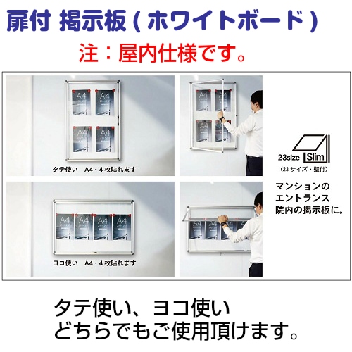 扉付スリム 掲示板 壁付け型(屋内用) / 外寸:638mm×938mm×厚み46mm/重量:9.4kg
