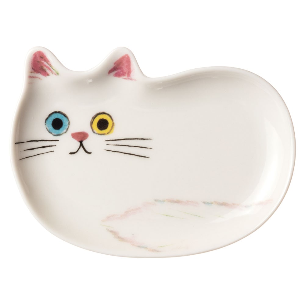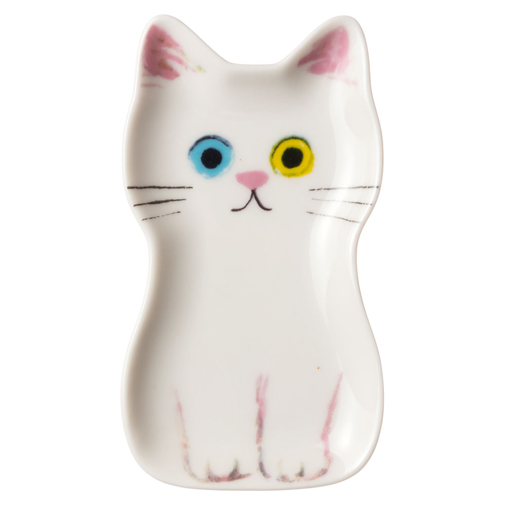 猫の豆皿OSUWARI しろ (80890) ECOUTE! minette 小皿・トレー まあるいおめめのキュートな猫たち