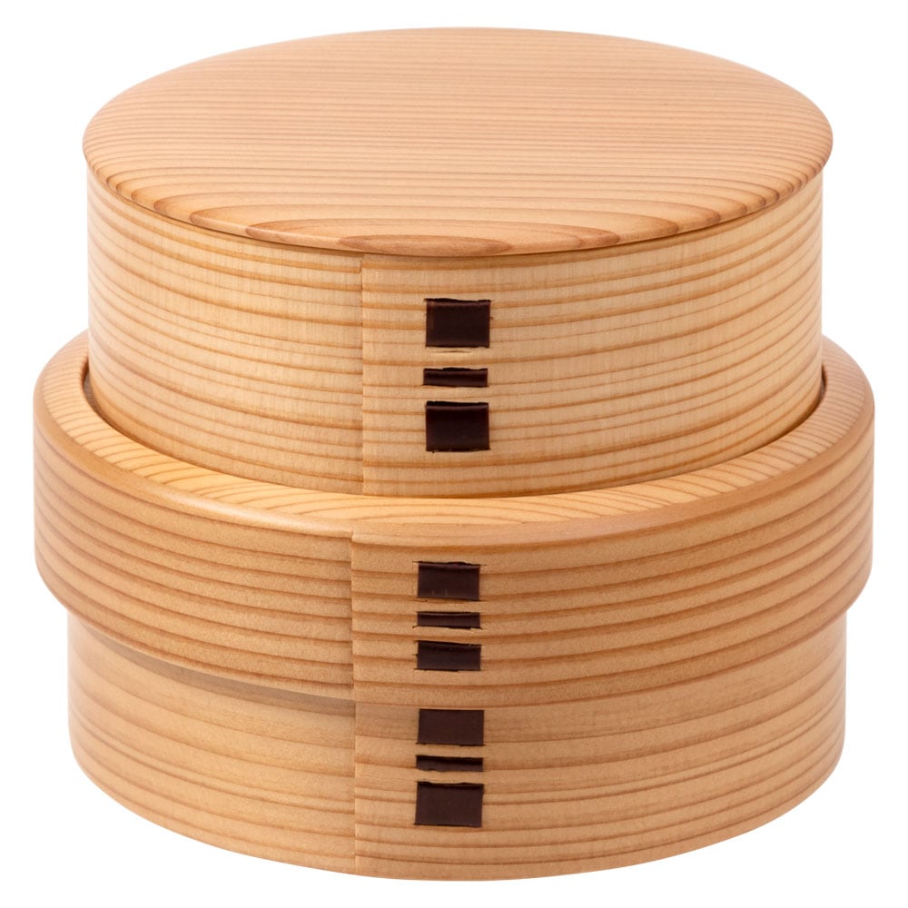 大館曲げわっぱ 入子丸弁当箱二段 (n0001) 秋田県の伝統工芸品 作者:伝統工芸士・栗盛俊二 Odate Magewappa ...