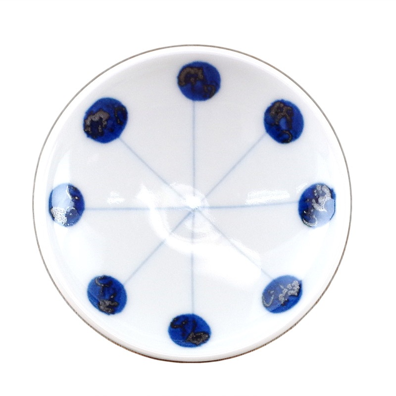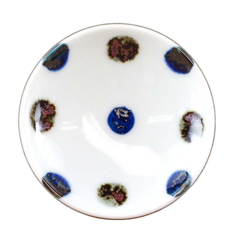砥部焼 梅山窯 3.5寸切立小皿(水玉)