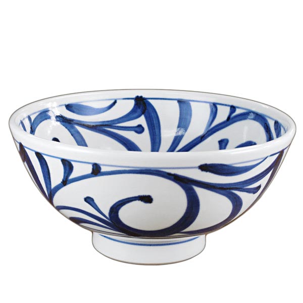砥部焼 梅山窯 6寸反り丼(内外唐草)