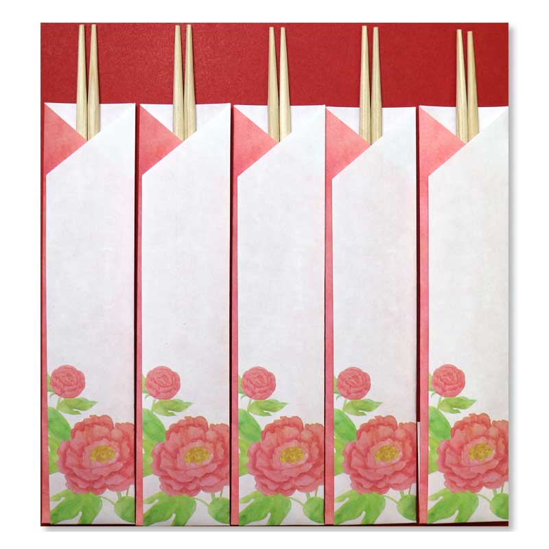 和詩倶楽部 御前御膳箸 朱鷺色牡丹 奈良吉野産ヒノキの祝箸5膳入り 長さ24cm 両口箸 奉書紙の箸袋入り お正月 祝いの席 檜の...