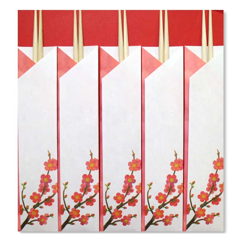 和詩倶楽部 御前御膳箸 紅梅 奈良吉野産ヒノキの祝箸5膳入り 長さ24cm 両口箸 奉書紙の箸袋入り お正月 祝いの席 檜のテーブ...