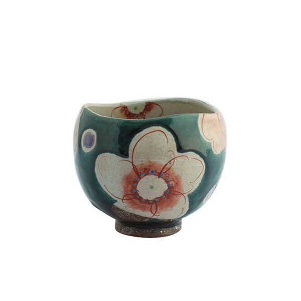 虚空蔵窯 いっぷく碗/古染椿(グリーン) 九谷焼