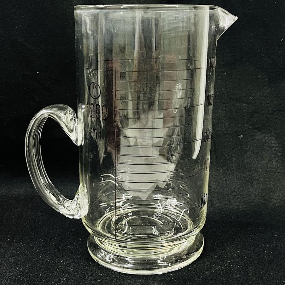 【未使用】ガラス計量カップ 取っ手付き 1000ml ジョッキ 花入れ 粉量り 硝子 目盛付き 猫瓶 気泡 昭和レトロ【未使用】ガ...