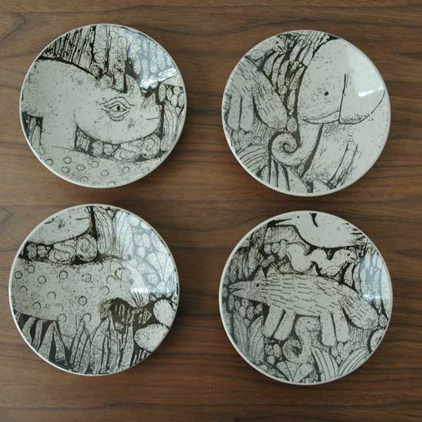 益子の皿 森と動物の絵皿 4寸皿 Japan Seriesジャパンシリーズ・益子焼 Lisa Larson(リサ・ラーソン)