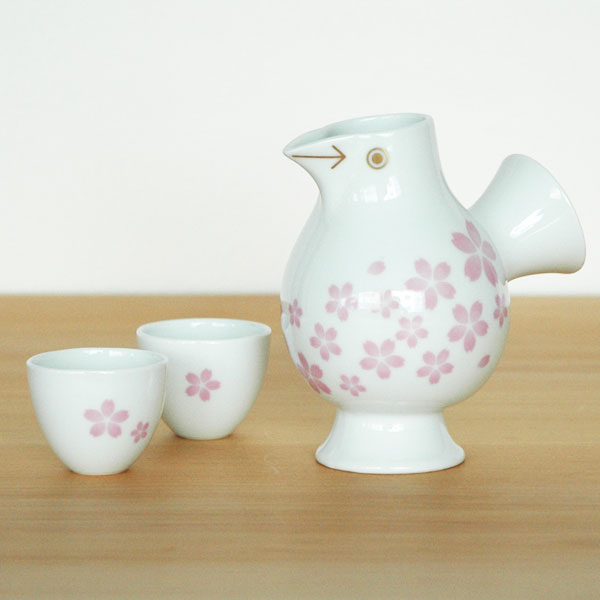 おさけとり さくら・徳利とお猪口のセット Japan Seriesジャパンシリーズ・波佐見焼 Lisa Larson(リサ・ラーソ...