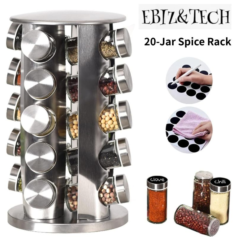 回転式 スパイスラック 20本セット ステンレス製 スリップ防止ベース付き スパイス収納ボトル付き 調味料ラック キッチン収納 シ...