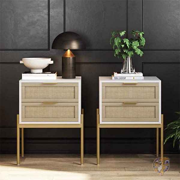 Nathan James ネイサン・ジェームス インテリア サイドテーブル ホワイト/ケーン/ゴールド 33403-2