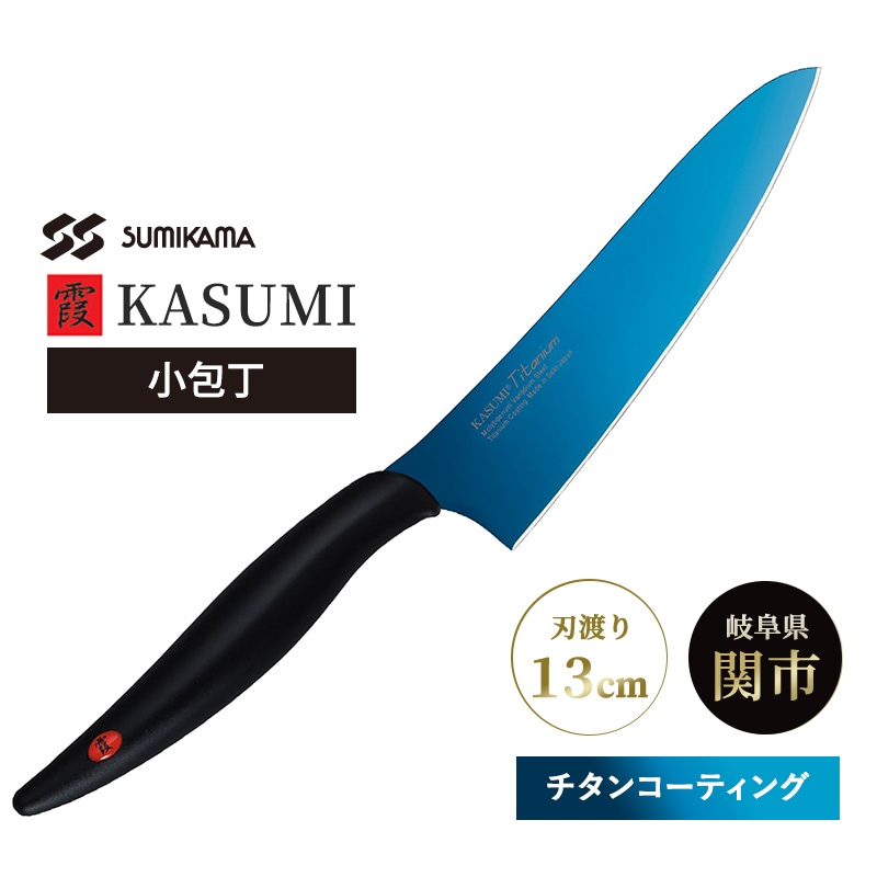 [22013-B] 霞 KASUMI 小包丁 ブルー チタンコーティング No.22013/B 13cm 包丁 ナイフ