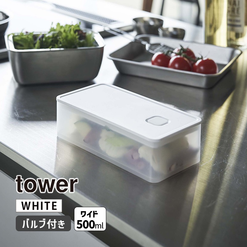 [05522-5R2] バルブ付き密閉保存容器 ワイド ホワイト 白 タワー tower キッチン 保管 角型 密閉 食品 作り置...