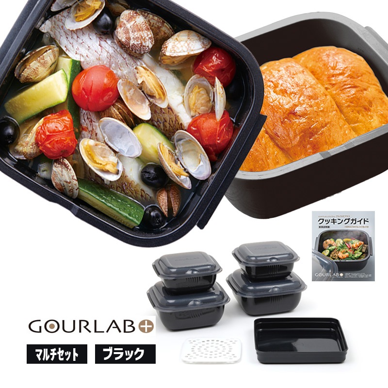 [4980356200469] グルラボプラス マルチセット ブラック 電子レンジ調理器 保存容器 調理 レンジ オーブン 冷凍 ...