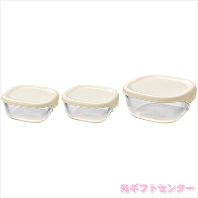 HARIO ハリオ 耐熱ガラス製保存容器3個セット オフホワイト KST-2012-OW