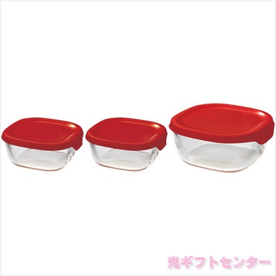 HARIO ハリオ 耐熱ガラス製保存容器3個セット レッド KST-2012-R