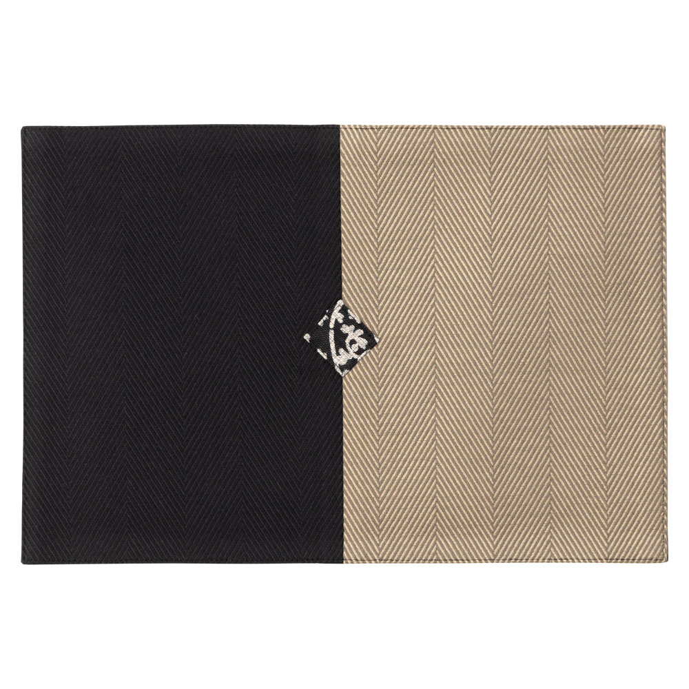 百道発信 紋 モーニングマット 黒×利休 (IKI-1496) ミニランチョン ティーマット 32×22cm 福岡県の布製品 Fa...