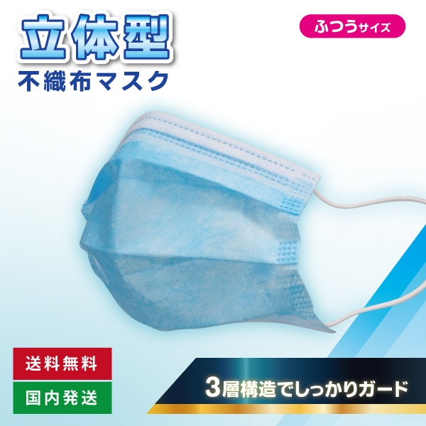 【送料無料】3層構造でしっかりガード!立体型不織布マスク(100枚入り+予備10枚送付!)