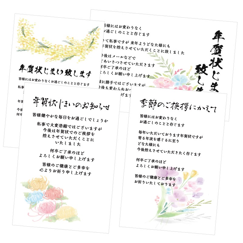 年賀状じまい はがき 清華デザイン 文章印刷済み 年賀状辞退 終活 連絡 通知ハガキ
