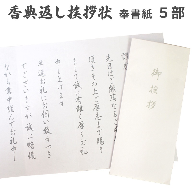 香典返し 挨拶状 ホワイト 奉書紙 5部 巻紙 封筒 文章印刷済み