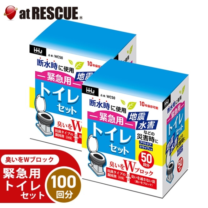 (50回分×2個セット) 便器にかぶせる!緊急用 トイレセット 100回分 WC50×2個 10年保存 (送料無料)(取寄せ品)