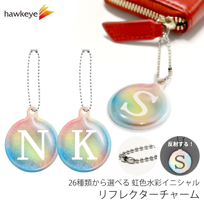虹色水彩/イニシャル リフレクター スウィングチャーム 両面反射