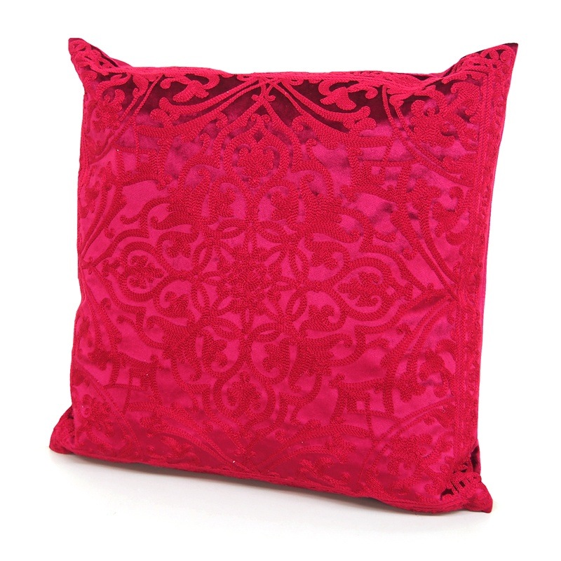 クラシックインテリア ベロア 刺繍 四角形クッション レッド