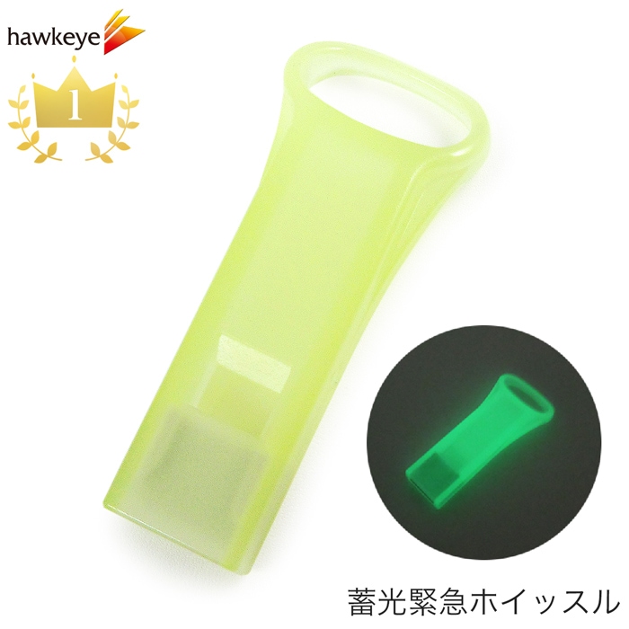 暗闇で光る蓄光!いざという時に 緊急ホイッスル 蛍光グリーン キャップ付き