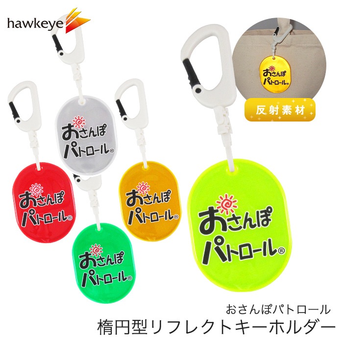 【ホークアイ製】おさんぽパトロール 反射 リフレク 楕円型カラビナ付きキーホルダー|両面印刷 楕円型 カラビナ 柔らかい 安全対策...