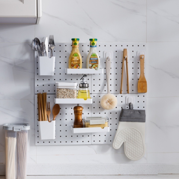 穴を開けない壁面収納有孔ボード 耐荷重3㎏ 複数枚で使用可能 工事不要 両面テープ 白ホワイト壁 石膏ボード 貼り付ける 取り付け...