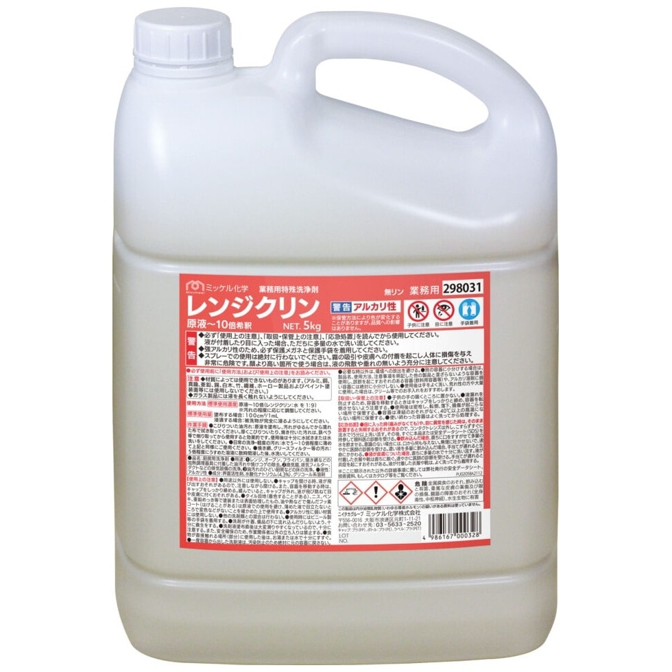 【全国送料無料】ミッケル化学 油汚れ専用洗浄剤 レンジクリン 5kg×2本入【メーカー直送・代引き不可・時間指定不可】
