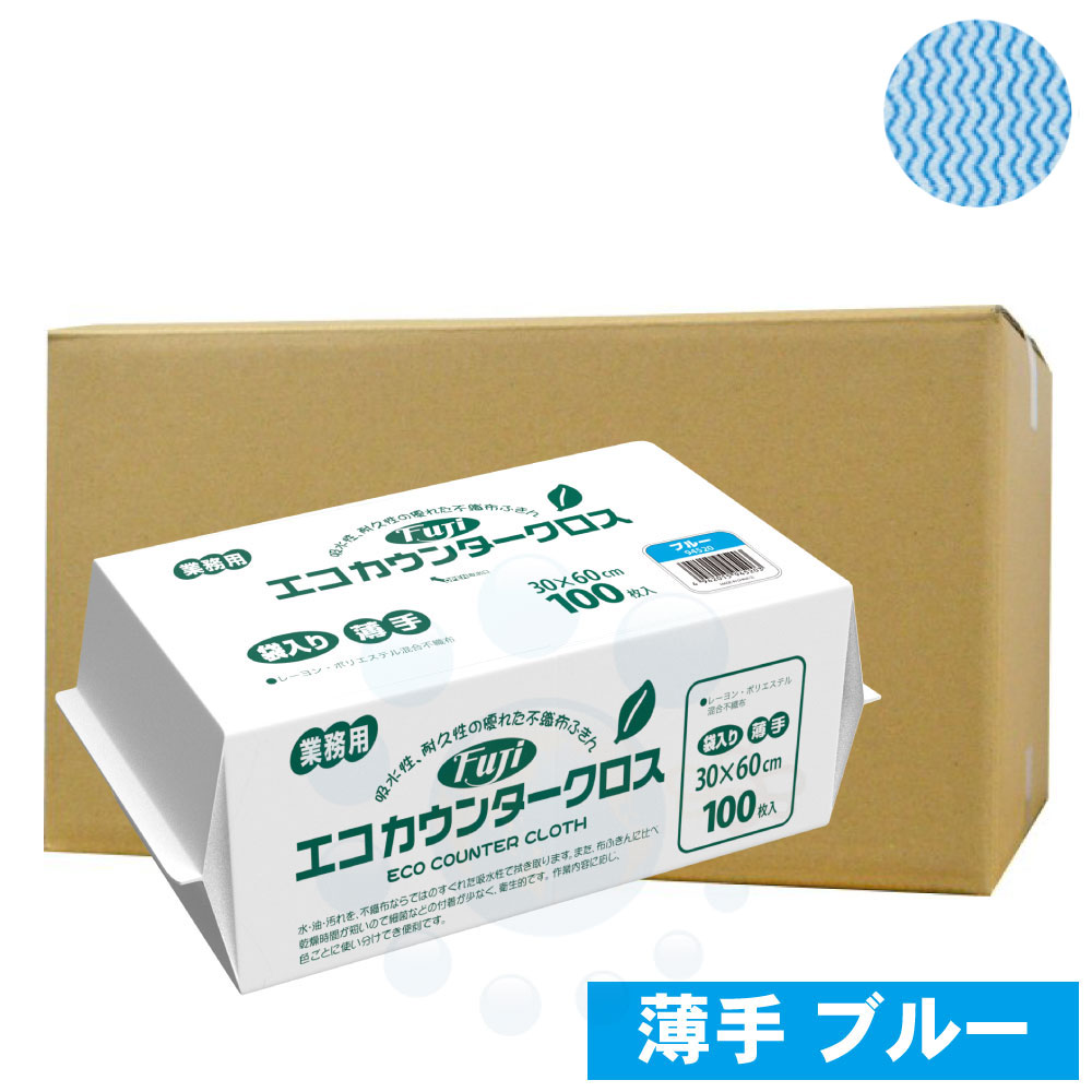 フジ エコ カウンタークロス 薄手 袋入 100枚×12袋 ブルー ふきん キッチンクロス キッチン 厨房 掃除 清掃 吸水性 耐...