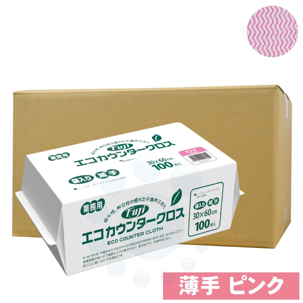 フジ エコ カウンタークロス 薄手 袋入 100枚×12袋 ピンク ふきん キッチンクロス キッチン 厨房 掃除 清掃 吸水性 耐...