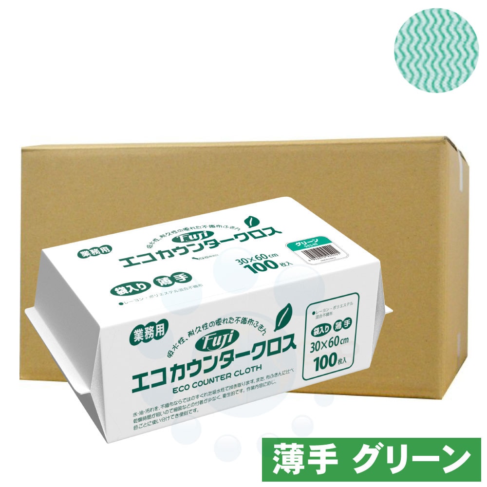 フジ エコ カウンタークロス 薄手 袋入 100枚×12袋 グリーン ふきん キッチンクロス キッチン 厨房 掃除 清掃 吸水性 ...