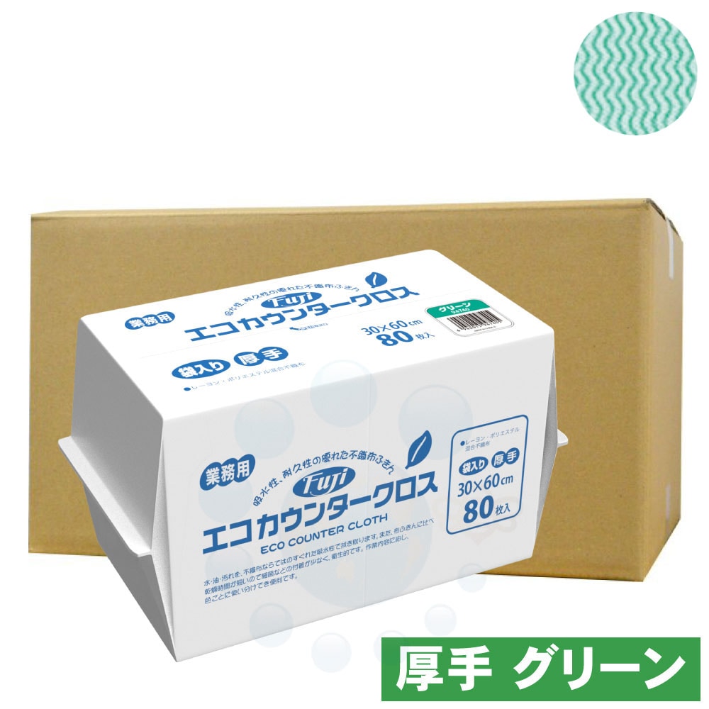 フジ エコ カウンタークロス 厚手 袋入 80枚×9袋 グリーン ふきん キッチンクロス キッチン 厨房 掃除 清掃 吸水性 耐久...