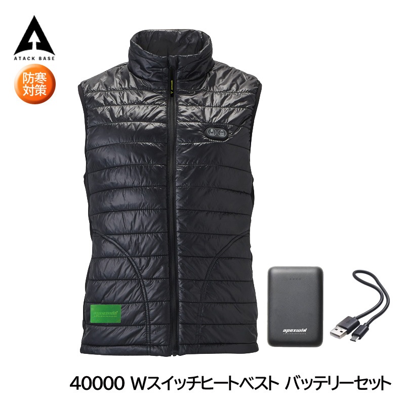 アタックベース 電熱ベスト Wスイッチヒートベスト バッテリーセット 40000 カーボンファイバー 防寒着 作業着
