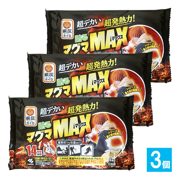 桐灰カイロ 貼るマグマ MAX(マックス) 4枚入×3個セット【小林製薬】シリーズ最大級の発熱力 超デカイ 超発熱力 極寒時でも快...