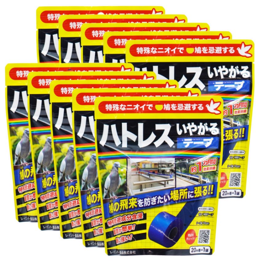 ハトレスいやがるテープ 20m巻×1個入×10セット 鳩 被害 嫌がる 忌避剤 設置 簡単 テープ ベランダ 飛来 防止 レインボ...