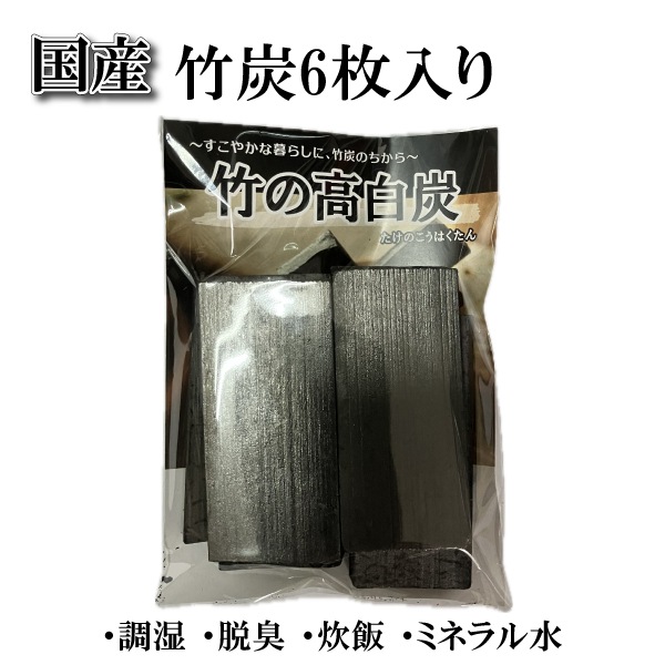 国産竹炭 竹の高白炭 6枚入 豊富なミネラル水作り 炊飯 脱臭効果 玄関 風水 消臭効果 送料一律380円