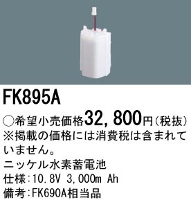 パナソニック FK895A(生産終了品・詰替対応品) 誘導灯・非常用照明器具-交換電池 バッテリー