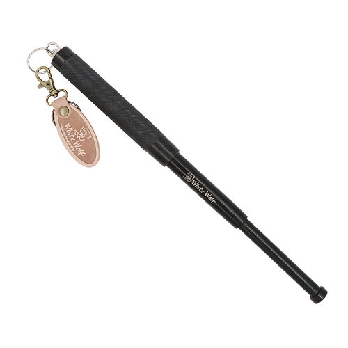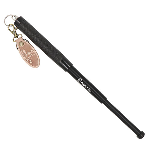 小型 スチール 3段特殊警棒 ホワイトウルフロゴ キーチェーン付き ブラック