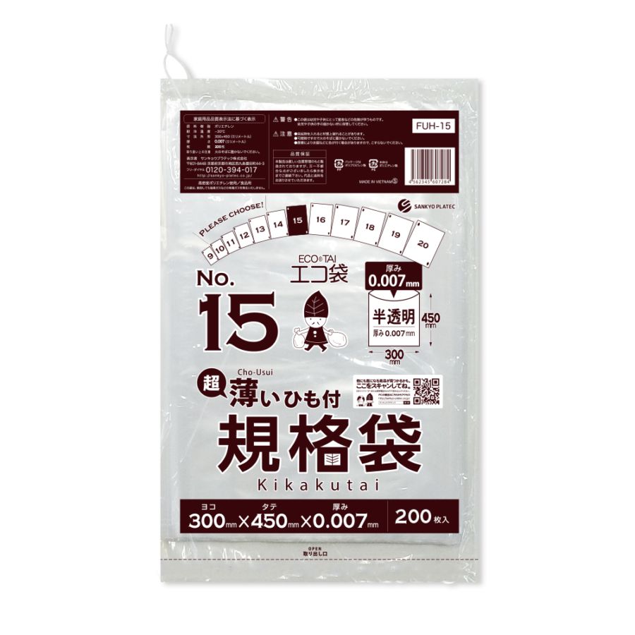 規格袋15号 ひも付 半透明 0.007mm厚(200枚×40冊)