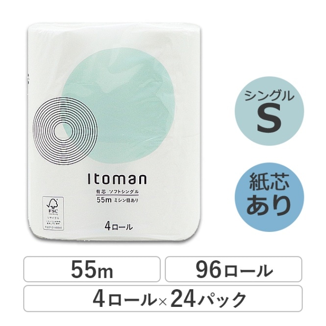 業務用 トイレットペーパー シングル 55m 4ロール 24パック イトマン 有芯 普通幅(114mm) ミシン目あり 24パック...