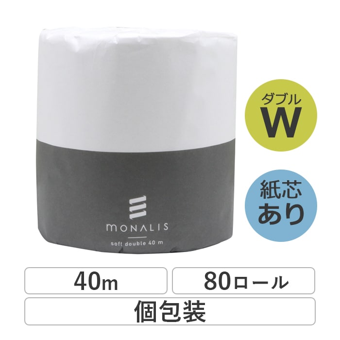 業務用 トイレットペーパー ダブル 40m 80ロール モナリス 芯あり キルトエンボス加工 普通幅(114mm) 1ロール ミシ...