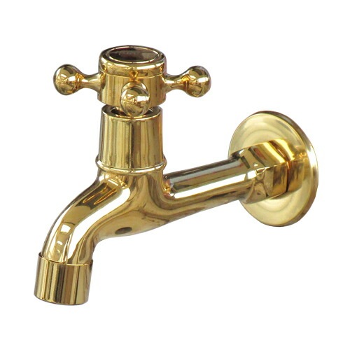 洗面水栓 蛇口 水栓金具 壁付用単水栓 シングルレバーハンドル ゴールド(金) [奥行13cm] INK-0302096H