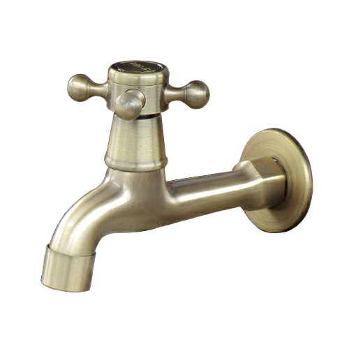 洗面水栓 蛇口 水栓金具 壁付用単水栓 シングルレバーハンドル アンティークゴールド(古金) [奥行19.3cm] INK-030...