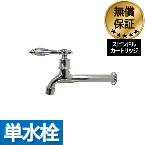 洗面水栓 蛇口 水栓金具 壁付用単水栓 シングルレバーハンドル シルバー(銀) [奥行19.3cm] INK-0302019G